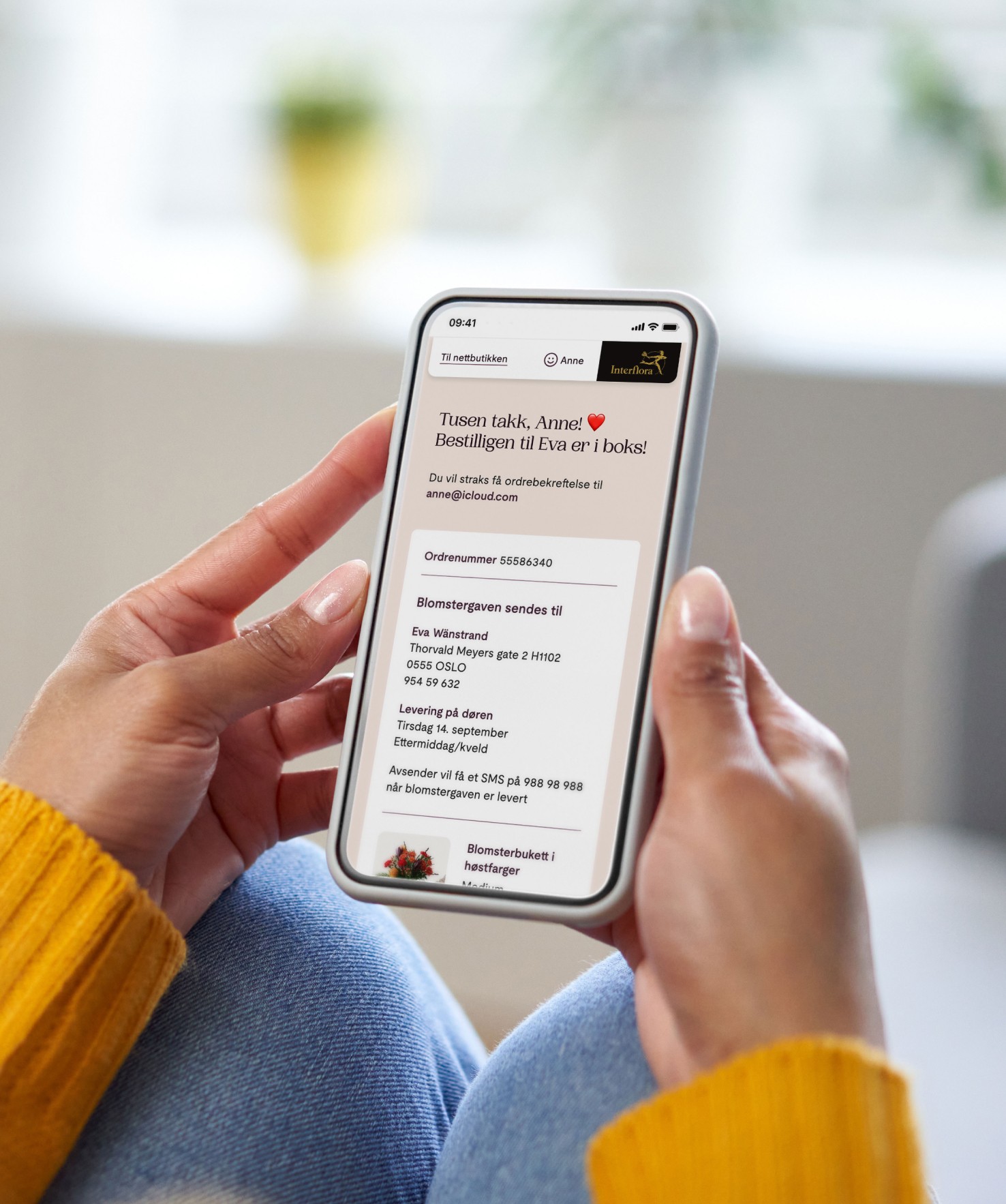 Som en del av arbeidet ble også Mine sider for Interflora+ medlemmer designet. Løsningen gir brukerne oversikt og kontroll over egen profil, tidligere bestillinger, påminnelser og medlemsfordeler. I profilen kan brukeren administrere kontaktinformasjon, endre passord og oppdatere samtykker for kommunikasjon på e-post, SMS, personalisert innhold og digital annonsering. Samtykkene er tydelig presentert og gir brukeren reell kontroll over egne personopplysninger i tråd med gjeldende personvernkrav.